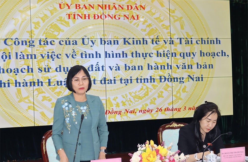 Chiều 26/3, Đoàn công tác của Ủy ban Kinh tế và tài chính Quốc hội làm việc với UBND tỉnh Đồng Nai về tình hình thực hiện quy hoạch, kế hoạch sử dụng đất và ban hành các văn bản thi hành Luật Đất đai.