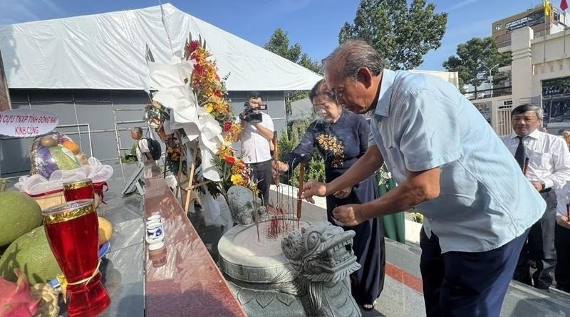 | Nguyên Phó Thủ tướng Chính phủ Trương Hòa Bình và nguyên Phó Chủ tịch nước Trương Mỹ Hoa thắp hương tưởng niệm các anh hùng liệt sĩ. |