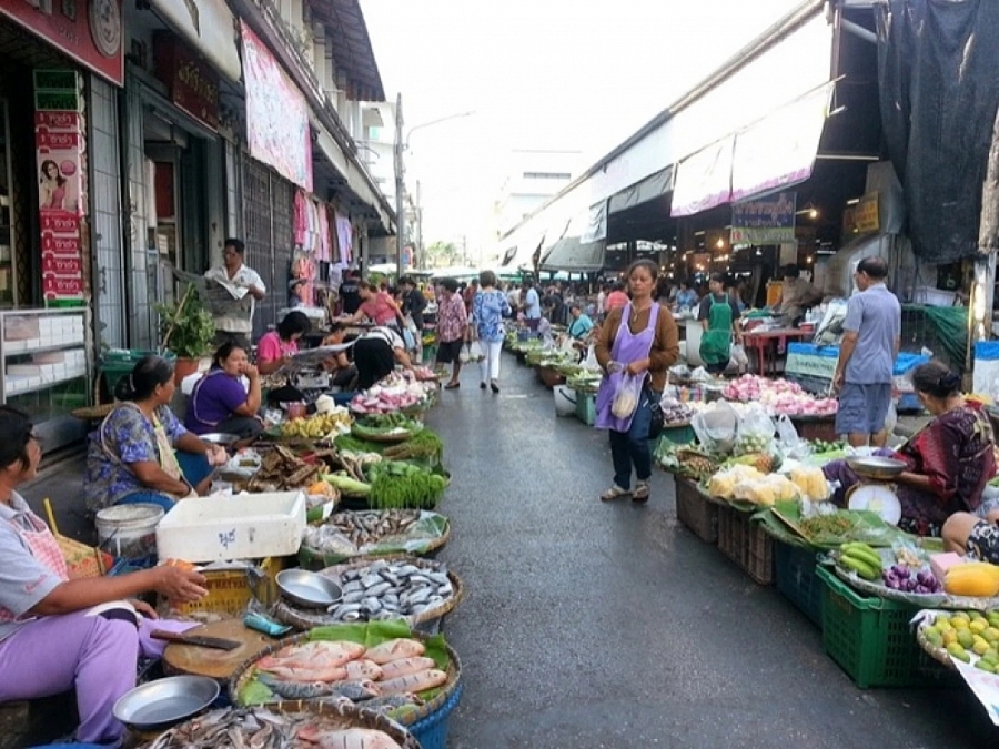 | Chợ Khlong Toei - chợ thực phẩm tươi sống tại Bangkok (Thái Lan). |
