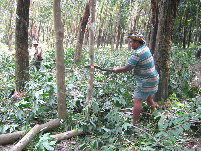 | Nông dân tỉnh Bình Phước ồ ạt chặt hạ vườn cao su để bán gỗ |