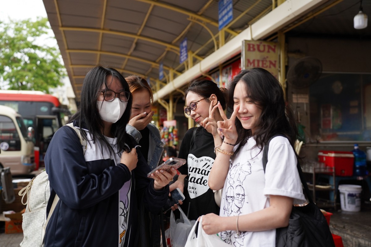 | Nhóm các bạn trẻ học sinh, sinh viên tranh thủ về sớm trước giờ tan tầm |