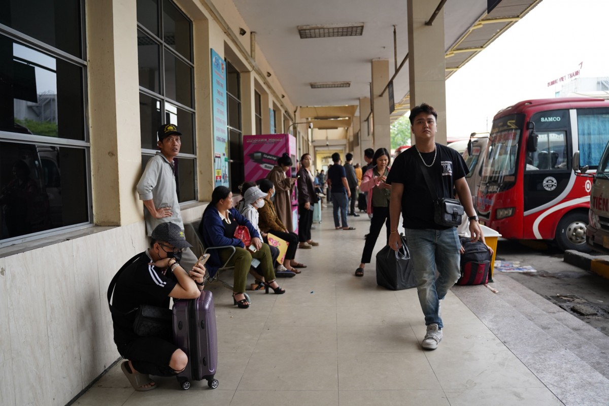 | Người dân xếp hàng chờ lên xe về quê nghỉ lễ 30/4 |