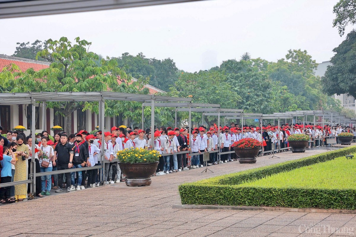 | Dòng người nối dài, lặng lẽ tiến từng bước vào Lăng viếng Bác, như một mạch nguồn tri ân không dứt, chảy suốt nửa thế kỷ hòa bình, thống nhất. |