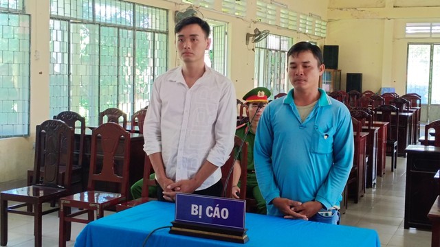 | Bị cáo Trần Công Chất (phải) và Lê Nhựt Vinh (trái) tại phiên tòa (Ảnh: Báo Đồng Tháp) |