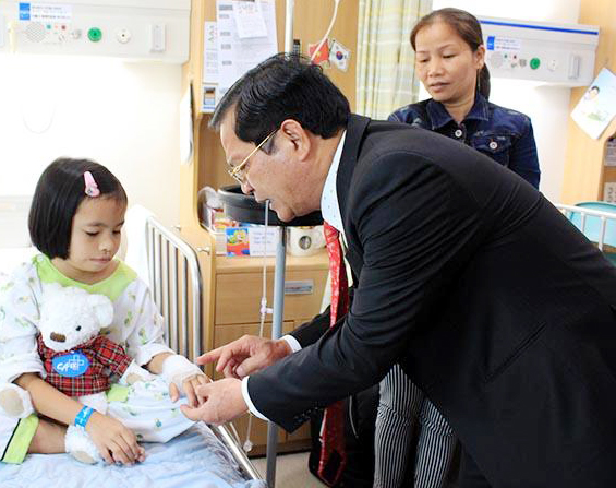 Bí thư tỉnh ủy Quảng Ngãi - Lê Viết Chữ thăm các em sau cuộc phẫu thuật |