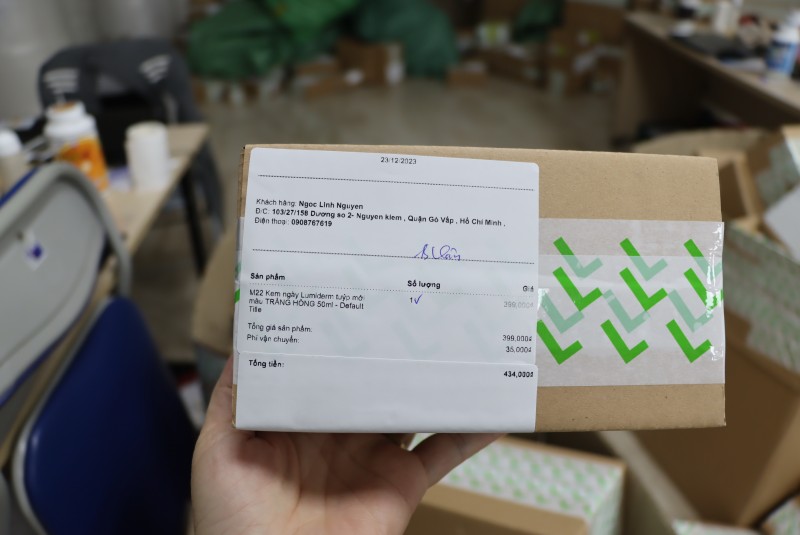 Tại thời điểm kiểm tra, trên 50 nhân viên có mặt ở các tầng đang thực hiện đóng gói, dán đơn lên các sản phẩm vừa được chốt đơn trong phiên livestream trước đó. Các đơn hàng được đóng gói chất thành đống nằm la liệt, ngổn ngang trên các mặt sàn.