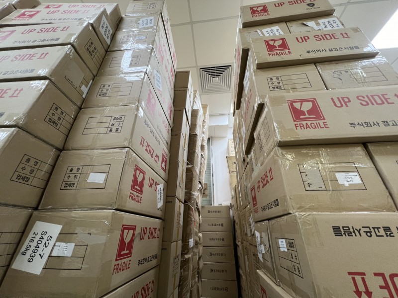 Kho hàng là một căn biệt thự 5 tầng, mỗi tầng rộng trên 100m2. Toàn bộ diện tích bên trong căn biệt thự cũng như cầu thang lên xuống đều được chủ cơ sở tận dụng để làm nơi chứa trữ hàng hoá.