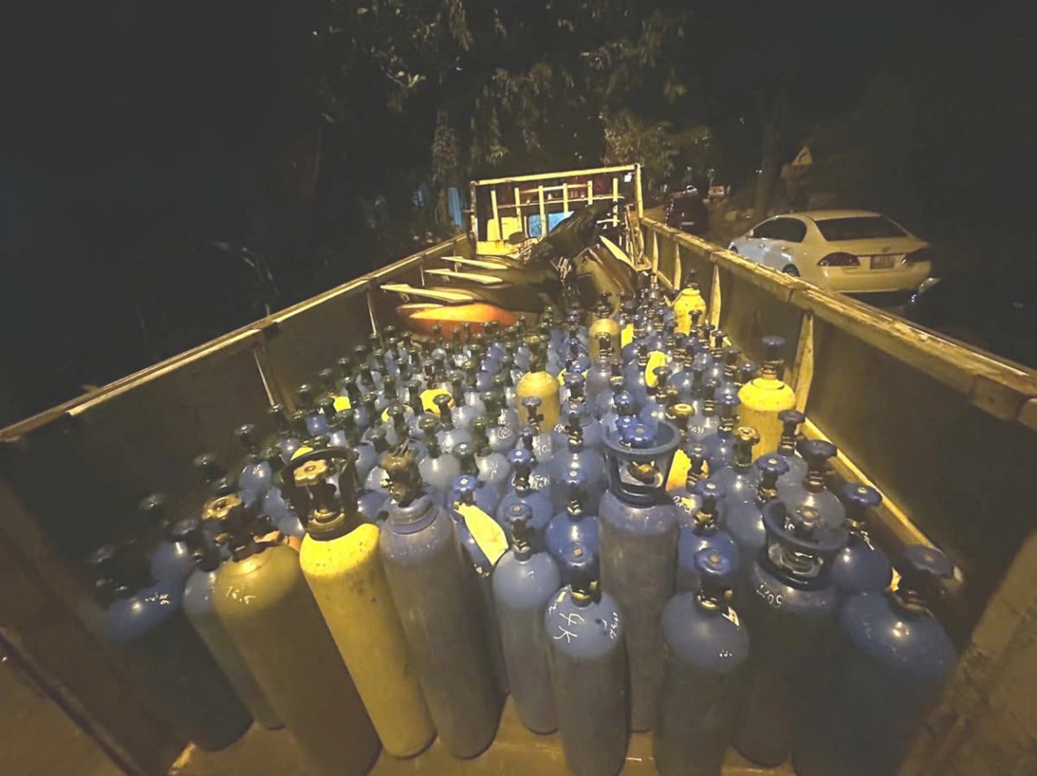 Qua kiểm tra, lực lượng liên ngành phát hiện 162 bình kim loại màu vàng, xanh nghi chứa khí N2O (khí cười). Qua làm việc, ông V. khai nhận toàn bộ số hàng hóa nói trên được đặt mua trên mạng nên không có hóa đơn, chứng từ chứng minh nguồn gốc xuất xứ.