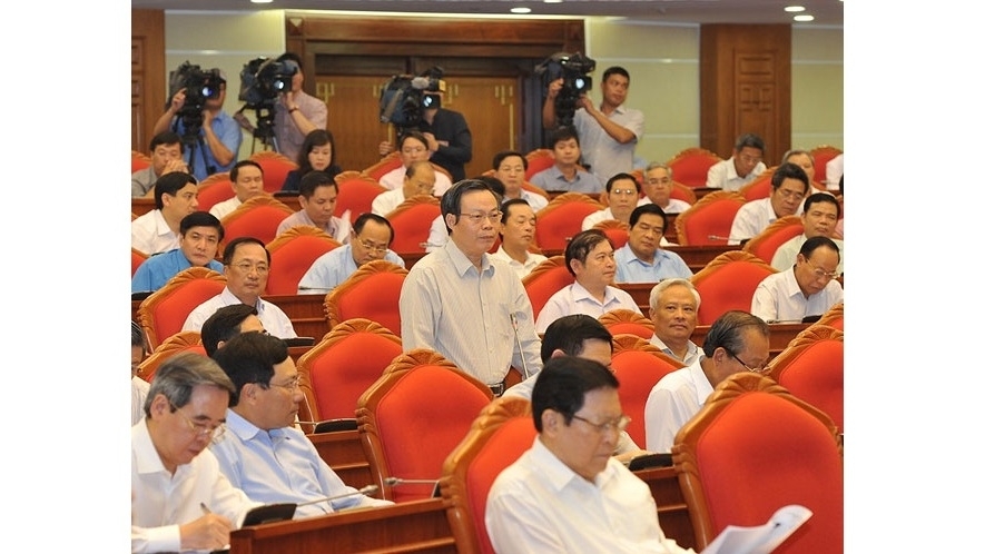 | Members of the Party Central Committee discuss a draft plan on reforming social insurance policy at the 4th working day of the committee’s 7th plenary session on May 10 - Photo: NDO |