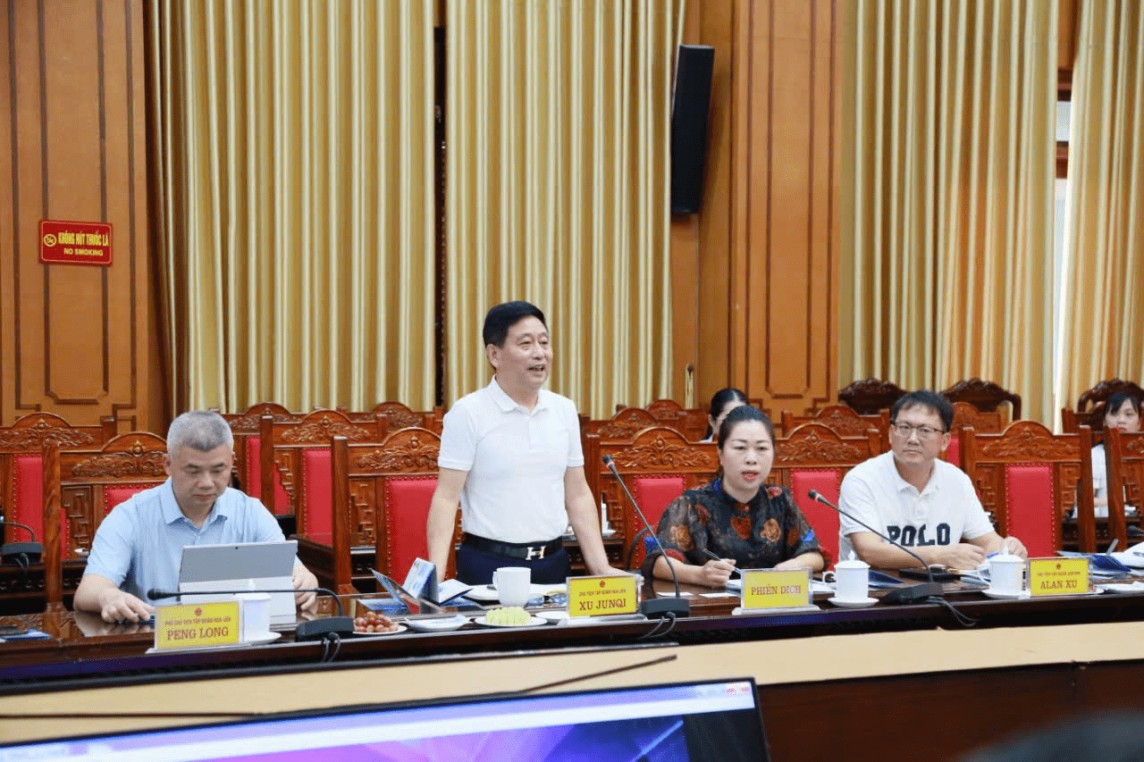 | Ông Xu Junqi, Chủ tịch Tập đoàn Công nghiệp gốm sứ Hoa Liên, phát biểu tại buổi làm việc (Ảnh: CTTĐT tỉnh Thái Bình) |