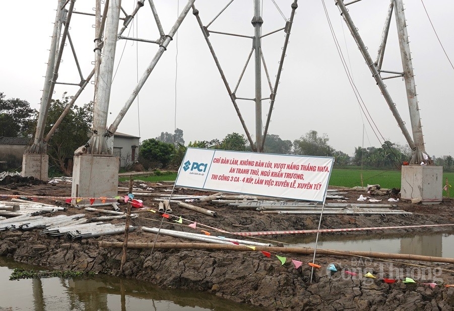 | Lãnh đạo EVN yêu cầu EVNNPT chỉ đạo các nhà thầu xây lắp cần phải tập trung nhân lực, vật lực, máy móc thi công 3 ca, 4 kíp, 24/7, đẩy nhanh tiến độ thi công, hoàn thành các vị trí móng trước ngày 31/3/2024 để triển khai lắp dựng cột nhằm đảm bảo mục tiêu hoàn thành dự án trong tháng 6/2024 theo chỉ đạo của Thủ tướng Chính phủ. |
