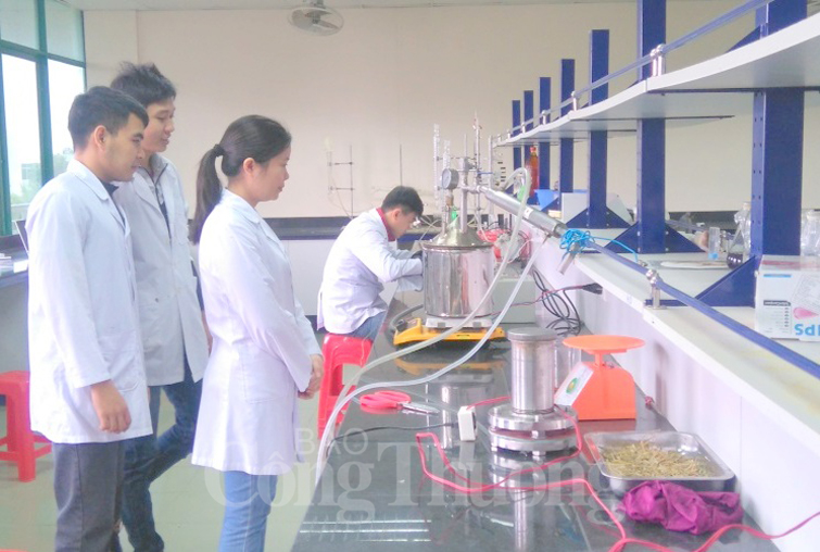 Giảng viên Nguyễn Thị Hà hướng dẫn sinh viên khoa Công nghệ Hoa làm thực nghiệm theo mô hình KOSEN |