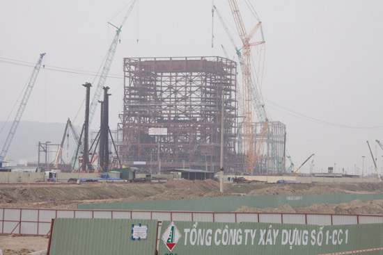 Theo tỉnh lộ 513 nối Quốc lộ 1A vào công trường nhà máy nhiệt điện Nghi Sơn 1, từ xa đã thấy lò hơi số 1 của nhà máy hiện lên bề thế, những giàn cẩu khổng lồ mang những khối cấu kiện thép lừng lững xoay giữa nền trời, như khẳng định tầm vóc của một công trình trọng điểm quốc gia. Làm việc trong tiếng máy ì ầm là hơn 1.000 cán bộ, công nhân và hàng trăm xe máy, thiết bị của các nhà thầu đang nỗ lực bám đuổi tiến độ thi công.