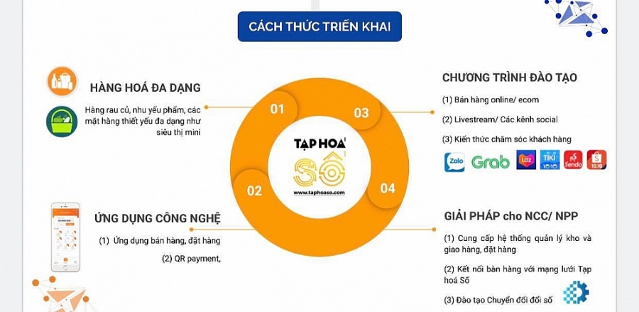 Với mục tiêu sử dụng nền tảng công nghệ để đưa hệ thống các cửa hàng tạp hóa trở thành chuỗi cung ứng thực phẩm thiết yếu, giảm áp lực cho các kênh phân phối hiện có, Hiệp hội Thương mại điện tử Việt Nam (VECOM) và Liên minh chuyển đổi số (DTS), cùng Hệ thống Chuỗi Tạp hoá Cam và IM Group - Hệ thống học viện kinh doanh số đã triển khai chương trình Tạp hoá số.