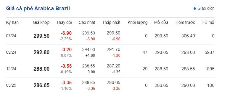 Đối với cà phê Arabica giao dịch trên sàn B3 Brazil sẽ mở cửa từ 19h00 - 02h35 (hôm sau), giờ Việt Nam.
