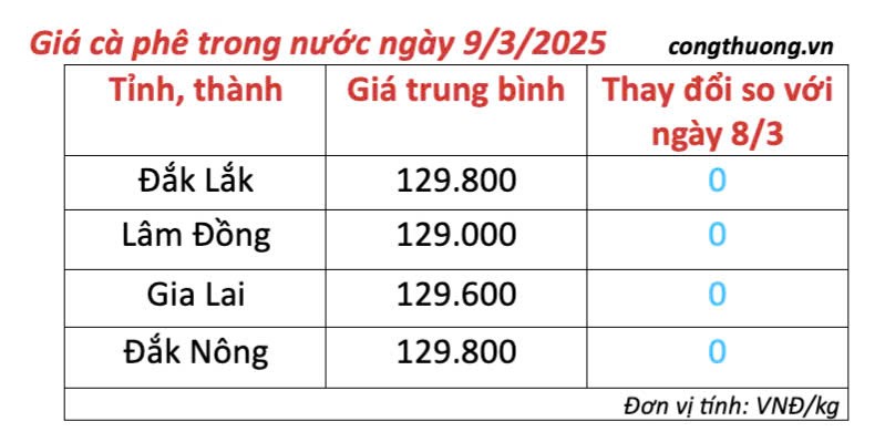 | Bảng giá cà phê trong nước cập nhật chiều ngày 9/3/2025 |