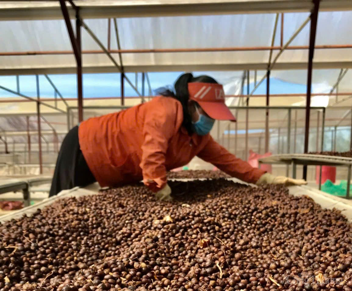 | Do thời tiết mưa kéo dài người dân tại xã Xuân Trường, TP. Đà Lạt mưa cà phê trong nhà lồng. Ảnh: Xuân Thắng |
