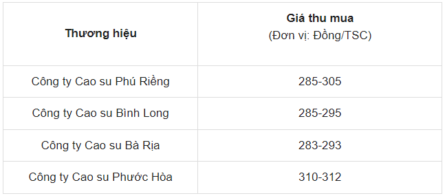 Giá mủ cao su tại thị trường trong nước