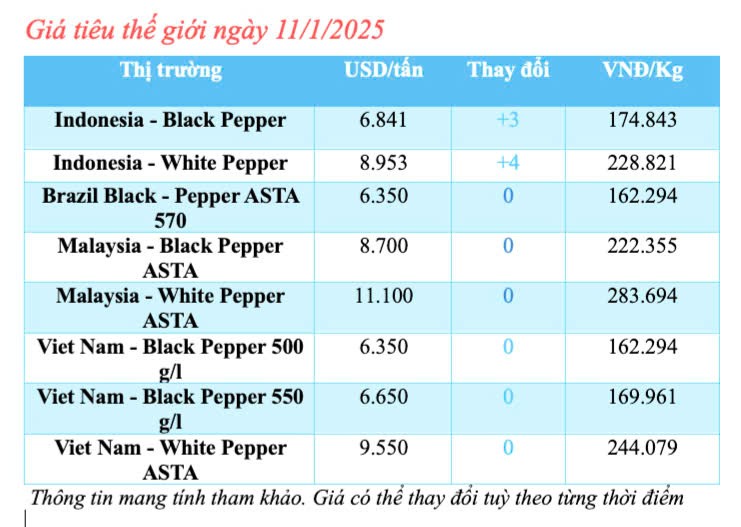 | Cập nhật giá tiêu thế giới hôm nay ngày 11/1/2025 |