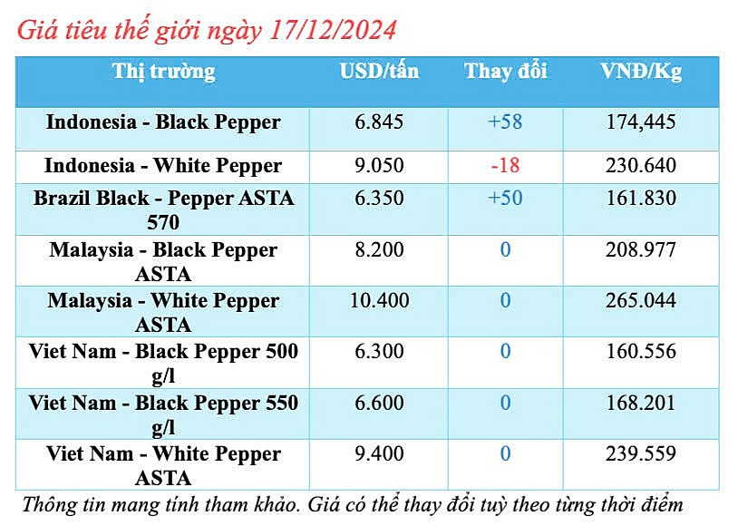 | Cập nhật giá tiêu thế giới hôm nay ngày 17/12/2024 |
