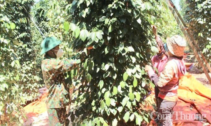 | Người dân tỉnh Đắk Nông thu hoạch tiêu |