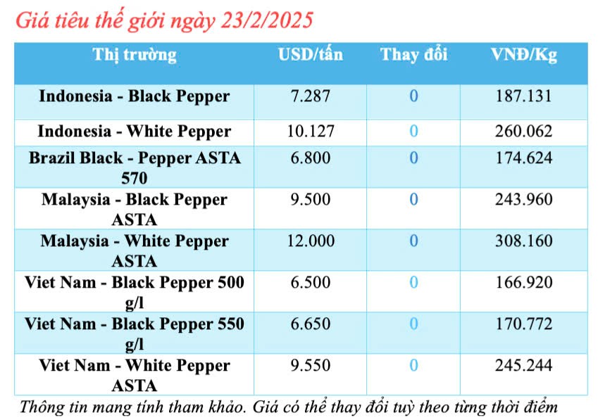 | Cập nhật giá tiêu thế giới hôm nay ngày 23/2/2025 |