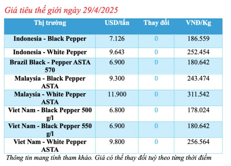 | Cập nhật giá tiêu thế giới chiều ngày 29/4/2025 |