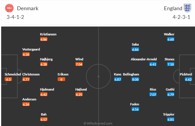 Dự đoán tỷ số: Đan Mạch và Anh: 1-2.