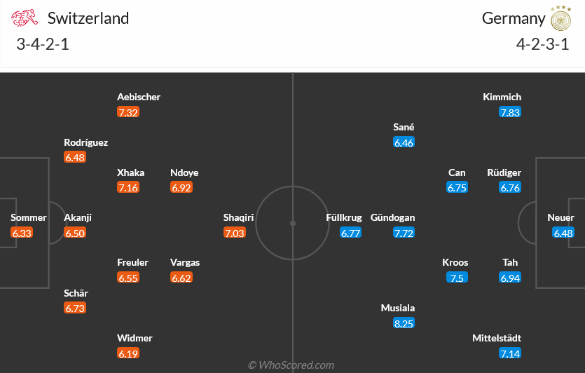 Sở hữu trong tay 4 điểm và gần như đã đặt một chân vào vòng 1/8 của giải đấu năm nay, Thụy Sĩ cũng không gặp quá nhiều áp lực khi bước vào trận này. Và một khi đã chơi với tinh thần thoải mái nhất thì Xherdan Shaqiri và các đồng đội hoàn toàn có thể mơ tới một kịch bản không thua người Đức.