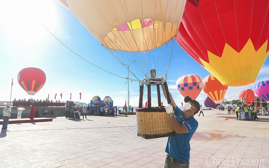Ngay từ đầu giờ sáng, các kỹ thuật viên có mặt tại khu vực quảng trường Bình Minh chuẩn bị bình khí và lắp đặt hàng loạt khinh khí cầu. Hai khinh khí cầu cỡ lớn dài 25 m, sử dụng 4 bình khí và 2 ống phun, giỏ có thể chở thêm du khách và phi công điều khiển.