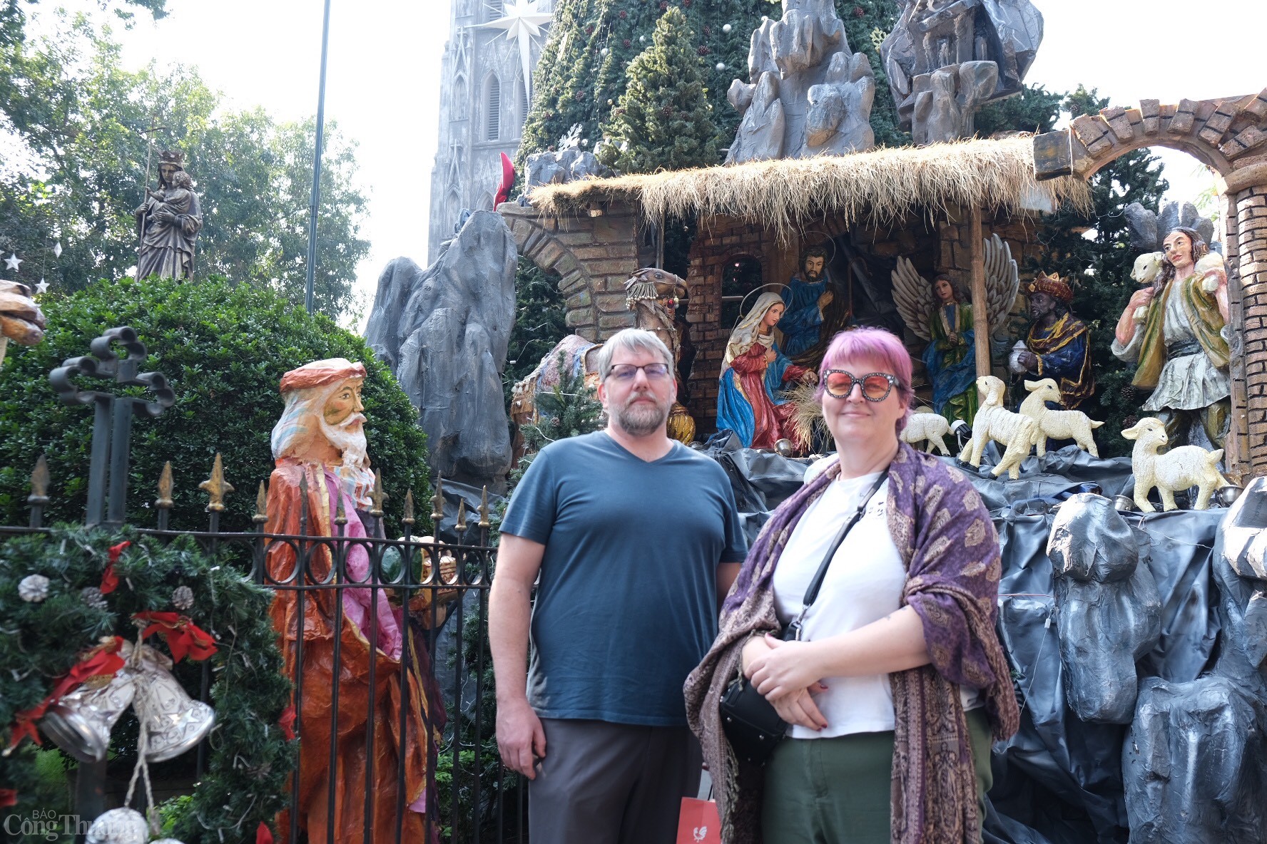 Chia sẻ với phóng viên Báo Công Thương, cặp vợ chồng người Mỹ Christie Lauder và Mulvany cho biết: “Chúng tôi mới đến Hà Nội được một ngày và thật bất ngờ khi không khi đón Giáng sinh ở đây không khác gì ở nhà. Người dân rất thân thiện, ẩm thực đa dạng và tiết trời trở lạnh vào buổi tối khiến tôi cảm thấy thật thú vị. Khi đến Nhà thờ Lớn ở Hà Nội, chiều cao của cây thông Noel đã khiến tôi hết sức choáng ngợp”. Ảnh: Trần Đình
