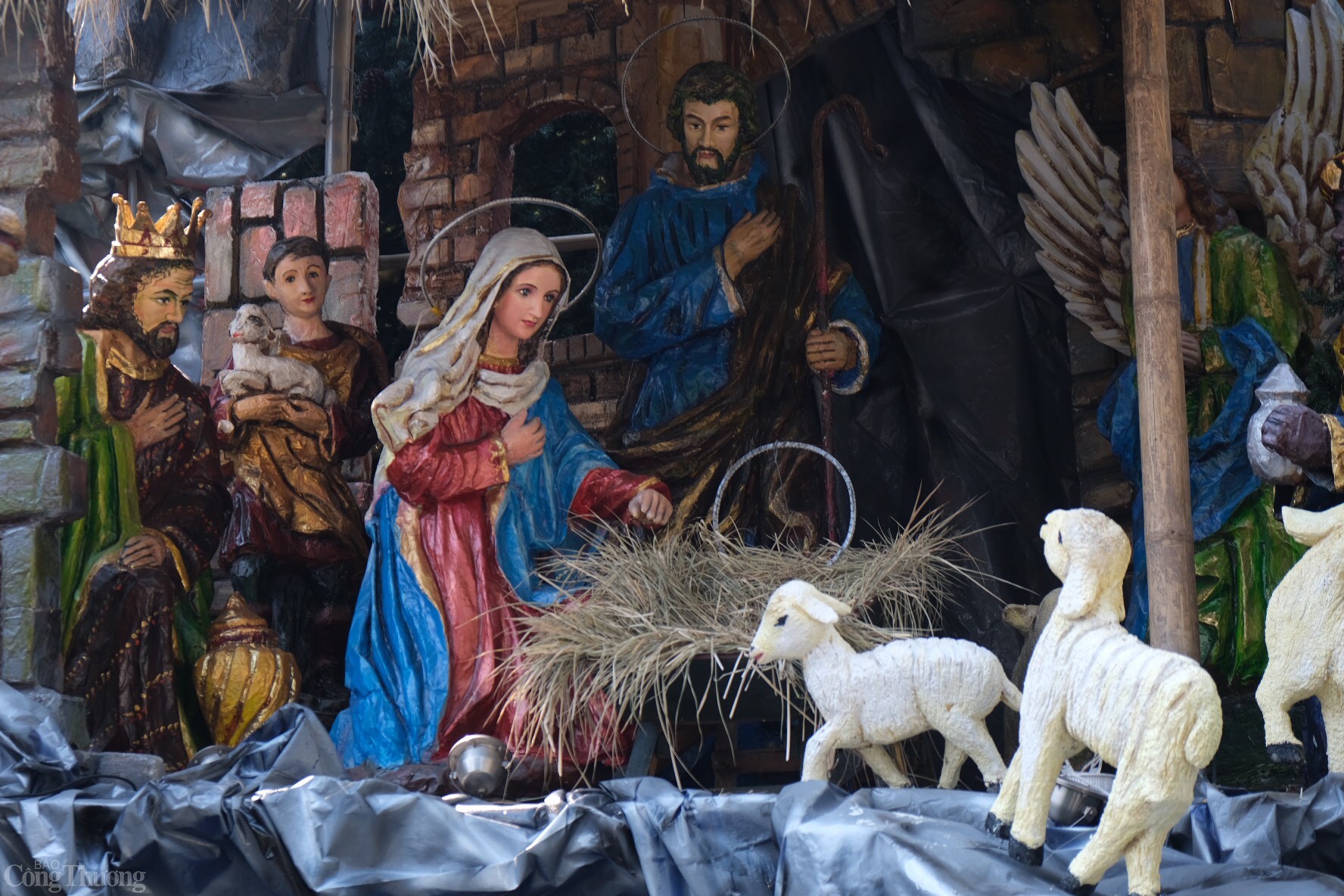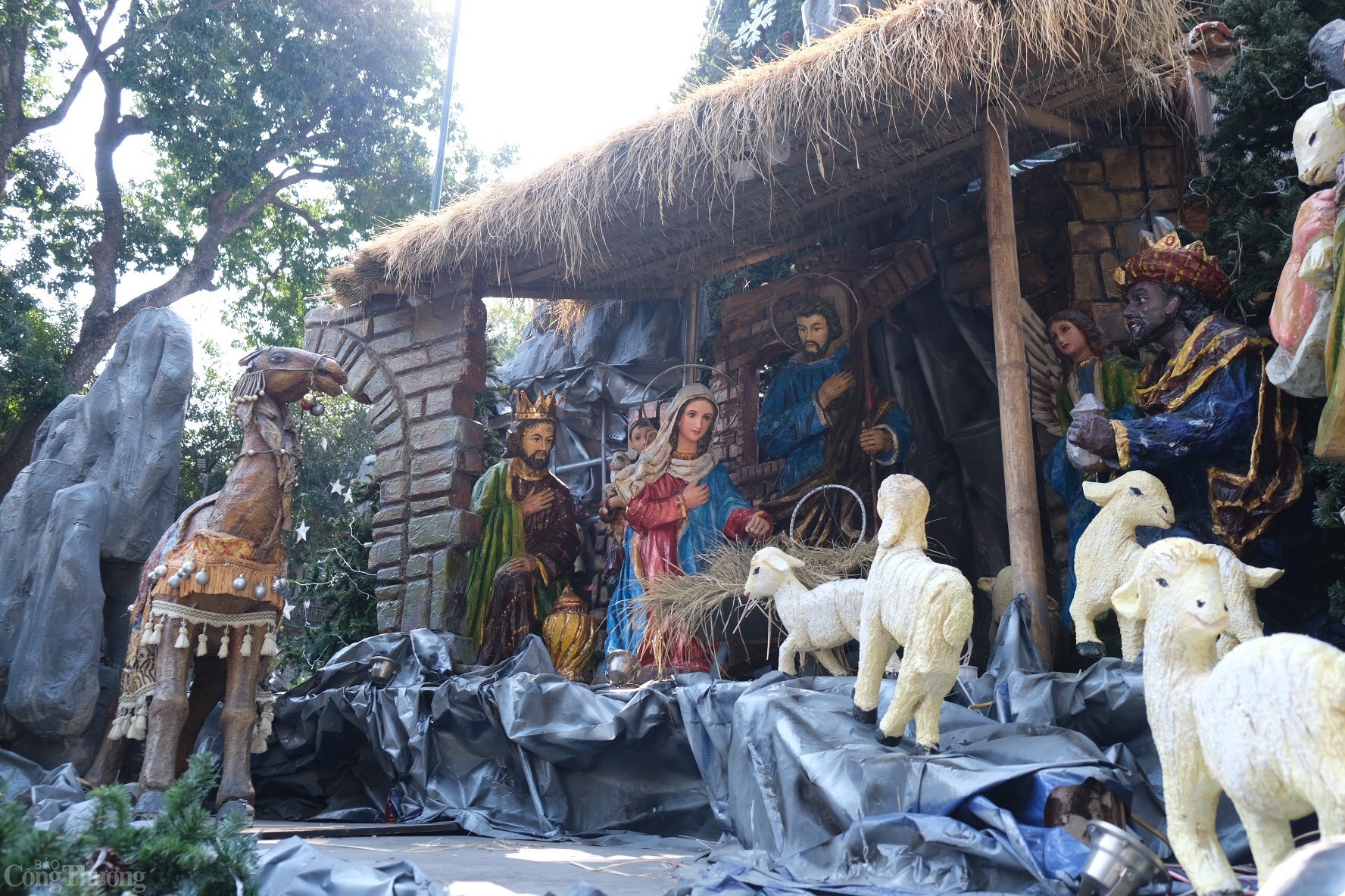 Tại Nhà thờ Lớn, hang đá Giáng sinh đã diễn tả sinh động câu chuyện Thiên Chúa xuống thế làm người trong Kinh Thánh. Ảnh: Trần Đình
