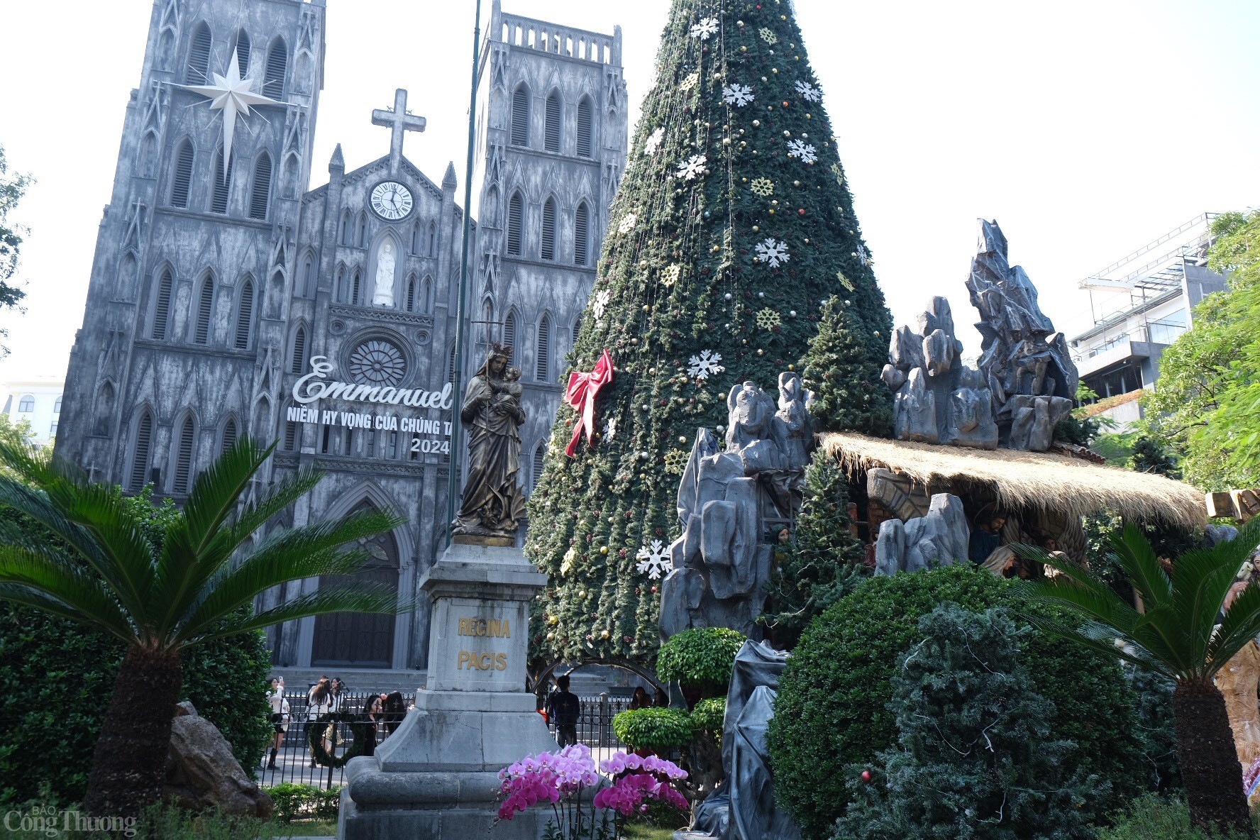 Nhà thờ Lớn Hà Nội nằm trên phố Nhà Chung với kiến trúc Gothic cổ kính luôn trở thành điểm đến không thể bỏ qua trong dịp Giáng sinh. Năm nay, nhà thờ được trang hoàng lộng lẫy với cây thông Noel cao 15m, với  ngôi sao Bethlehem tỏa sáng trên đỉnh cùng hà