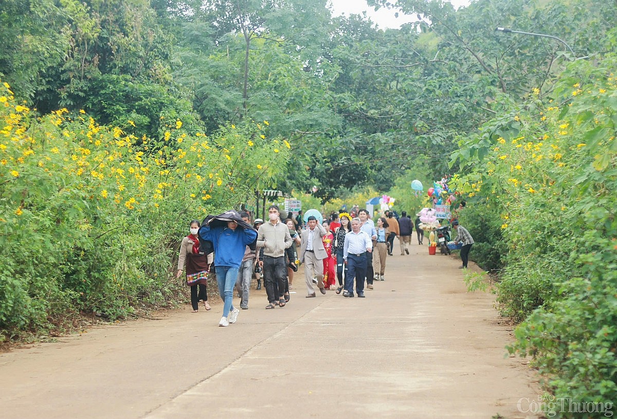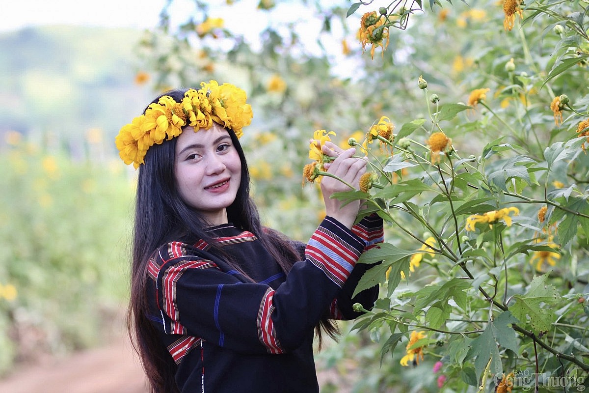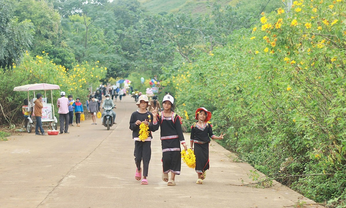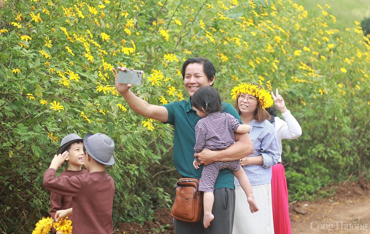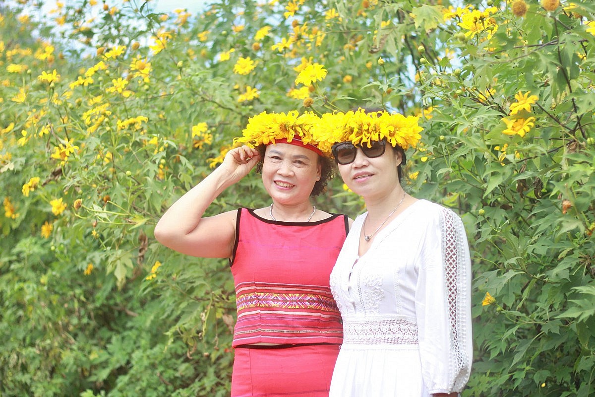 | Hoa dã quỳ vàng rực nở rộ khắp núi đồi khiến du khách và người dân mê đắm |