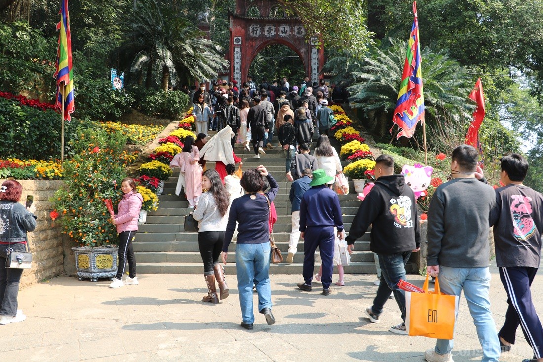 | Không chỉ có người dân tại tỉnh Phú Thọ, đông đảo du khách trên khắp mọi miền Tổ quốc cũng tề tựu về Khu di tích lịch sử Đền Hùng vào những ngày đầu năm mới. |