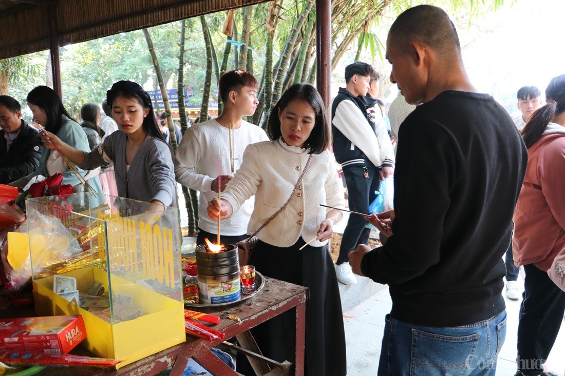 | Rất đông người dân thắp hương, cầu khấn tại Đền Trung. |