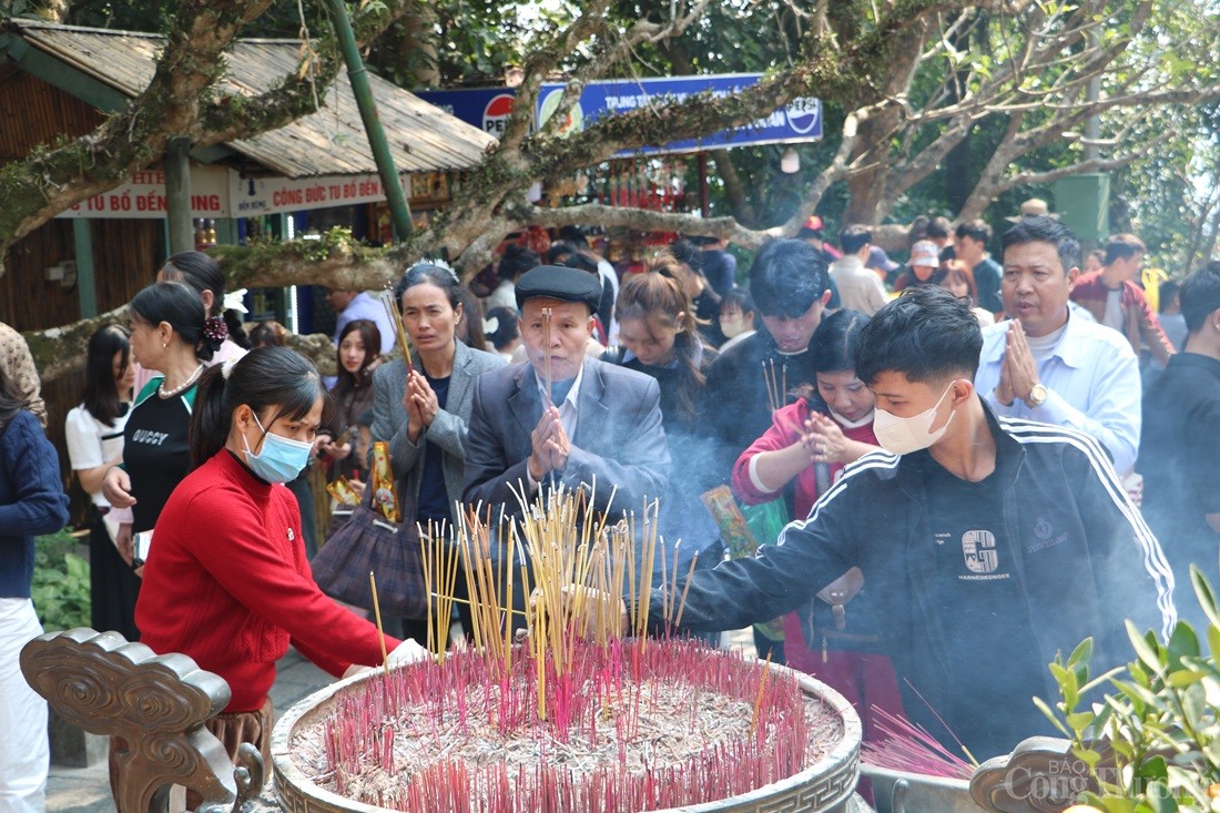 | Thời tiết nắng đẹp tạo điều kiện cho du khách thập phương hành hương về đất Tổ. |