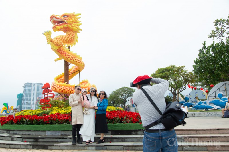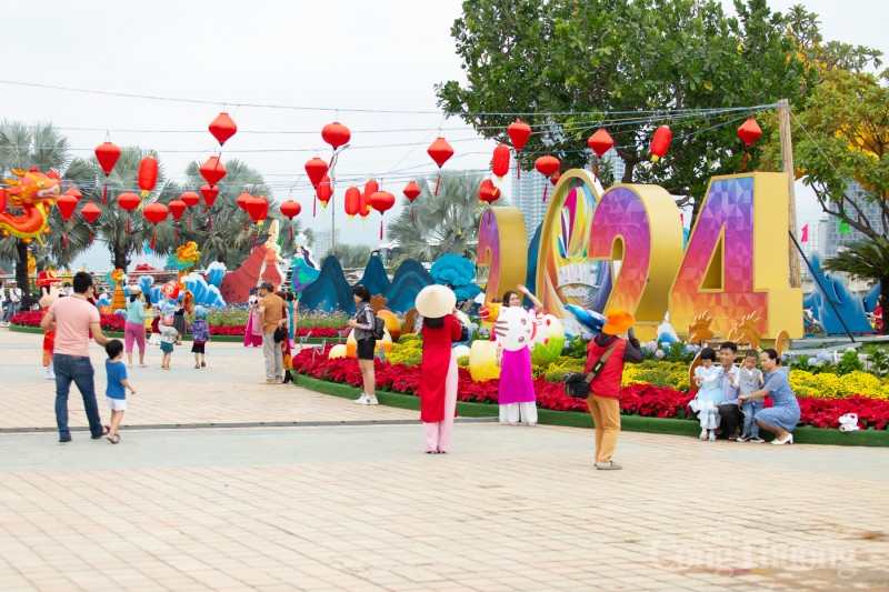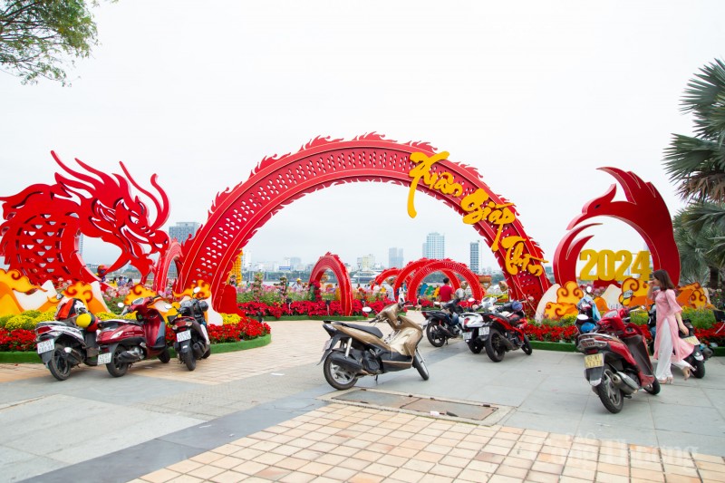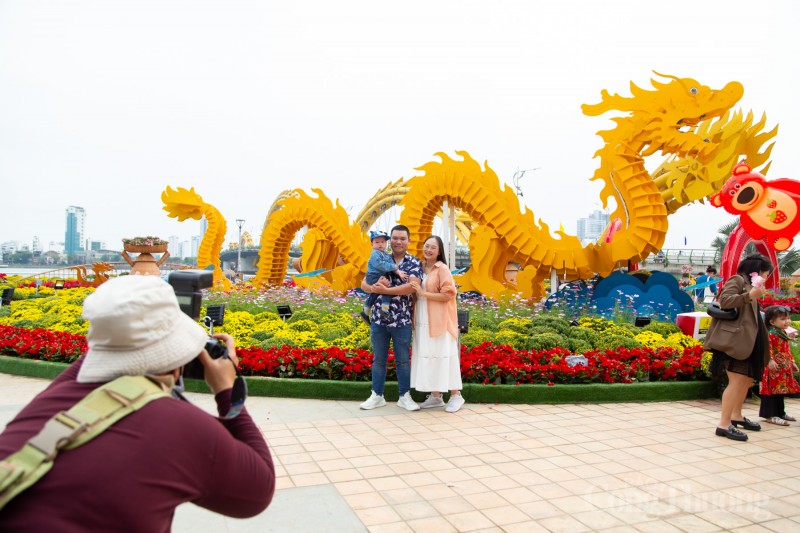 Rất đông người dân và du khách đến check-in đường hoa Tết Đà Nẵng mừng Tết Nguyên đán Giáp Thìn 2024.