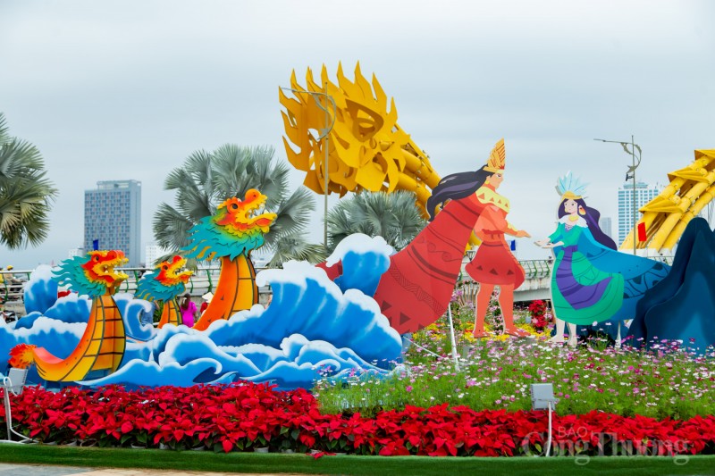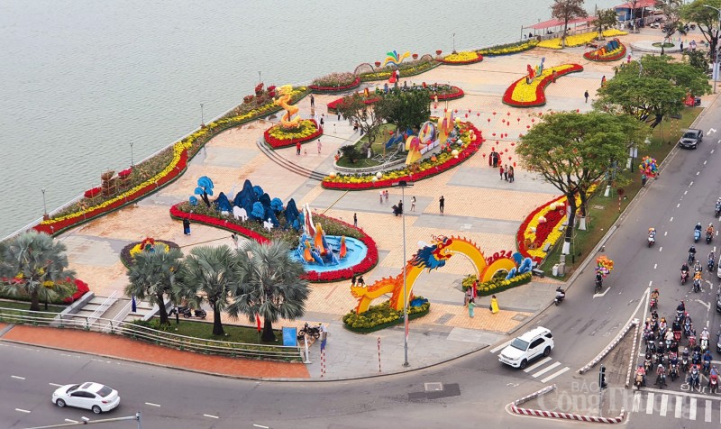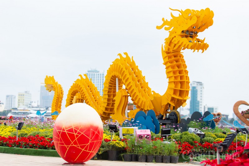 Năm nay là năm Giáp Thìn nên linh vật Rồng luôn được chọn để làm điểm nhấn của đường hoa Tết Đà Nẵng.