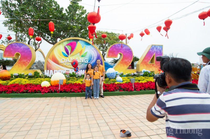 Ai cũng muốn lưu lại những khoảnh khắc đẹp cùng người thân bên đường hoa Tết Đà Nẵng