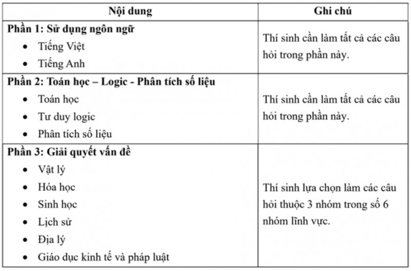 Cấu trúc đề thi đánh giá năng lực từ năm 2025 vẫn gồm 3 phần: Sử dụng ngôn ngữ; toán học, tư duy logic và phân tích số liệu; giải quyết vấn đề.