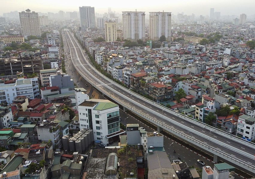 Trước đó tháng 11/2020, phân đoạn trên cao từ Ngã Tư Sở tới Ngã Tư Vọng được đưa vào khai thác với 4 làn xe cao tốc. Gần 2 năm qua, máy móc được huy động để hoàn thành đoạn còn lại kéo dài từ Ngã Tư Vọng đến điểm tiếp giáp phía Nam cầu Vĩnh Tuy.