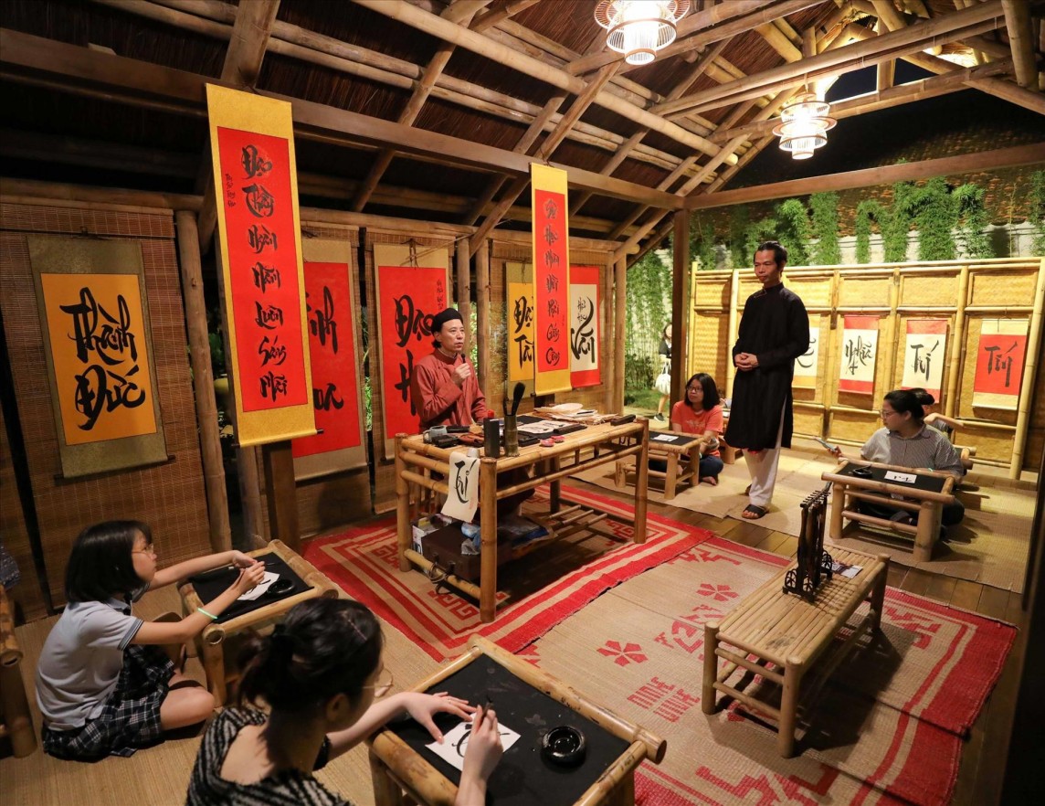 | Một trong các hoạt động của tour đêm Văn Miếu-Quốc Tử Giám. Ảnh: TTXVN |