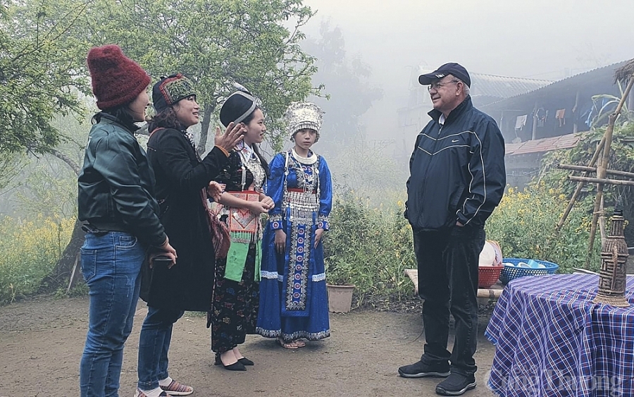 | Du khách ở bản Mường lống huyện Kỳ Sơn- nơi được xem là Sapa của xứ Nghệ |