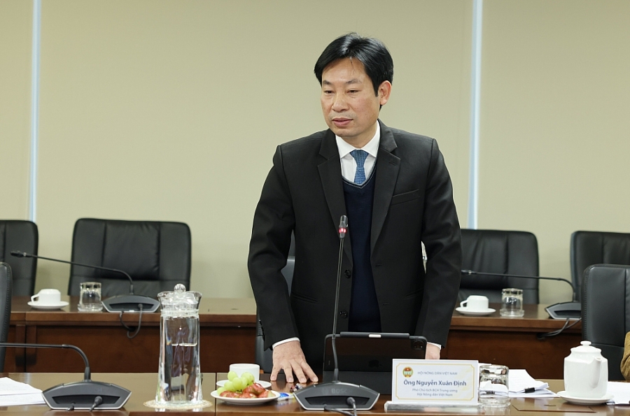 | Ông Nguyễn Xuân Định, Phó Chủ tịch Trung ương Hội Nông dân Việt Nam phát biểu tại hội nghị |