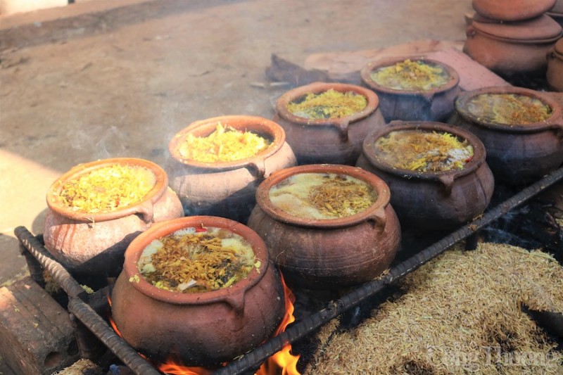 | Sau khi ướp xong thì xếp vào niêu đất và bắt đầu kho trên bếp. |