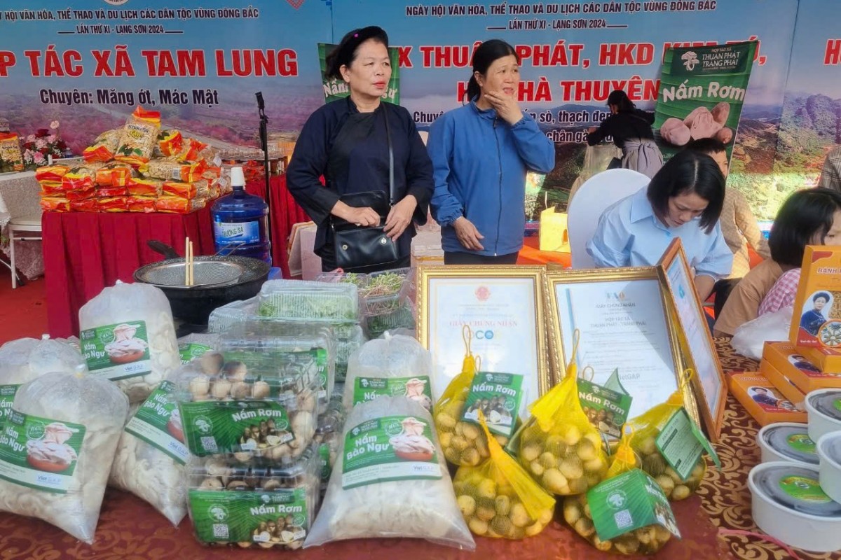 Đặc biệt, trong không khí ngày hội, nhiều sản phẩm truyền thống và các sản phẩm Ocop của bà con đồng bào các dân tộc tỉnh Lạng Sơn được trưng bày tại các gian hàng giúp du khách được tận hưởng văn hóa ẩm thực xứ Lạng.
