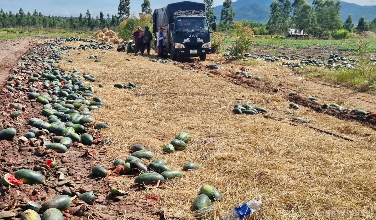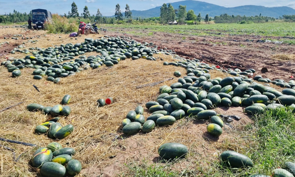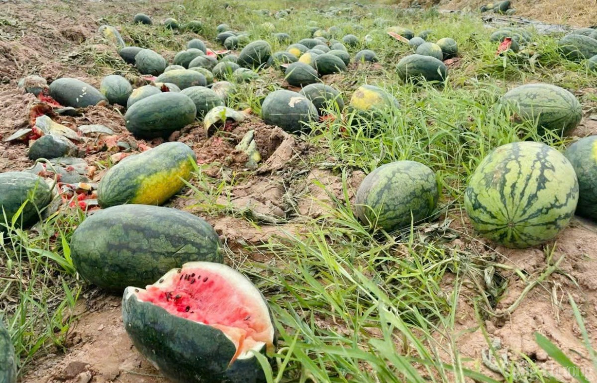 Theo người dân, nhiều ruộng dưa khác có chất lượng kém hơn, dưa xấu nên thương lái chỉ đến xem qua rồi rời đi mà không mua. Người dân không thể bán được đành phải bỏ, để những quả dưa lăn lóc khắp nơi, không thu hoạch.