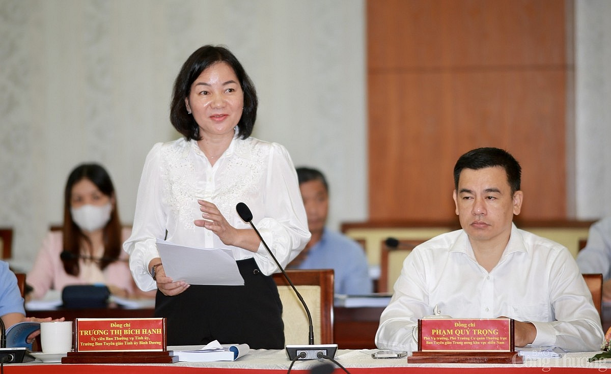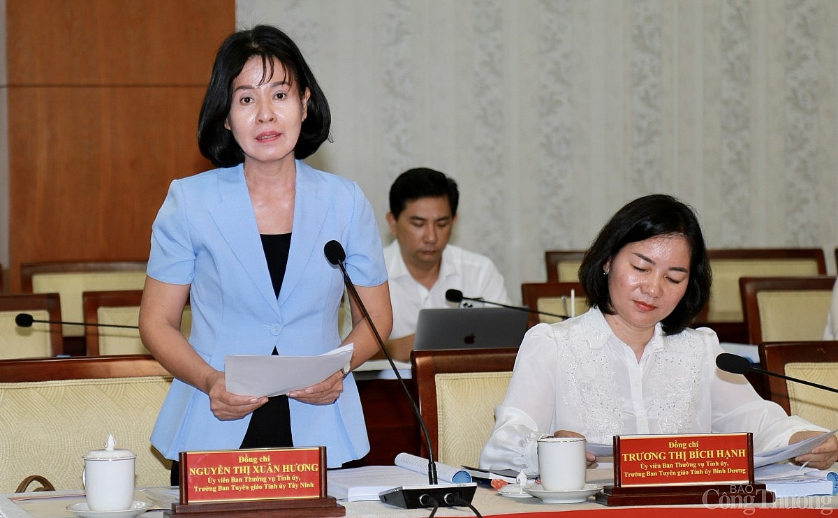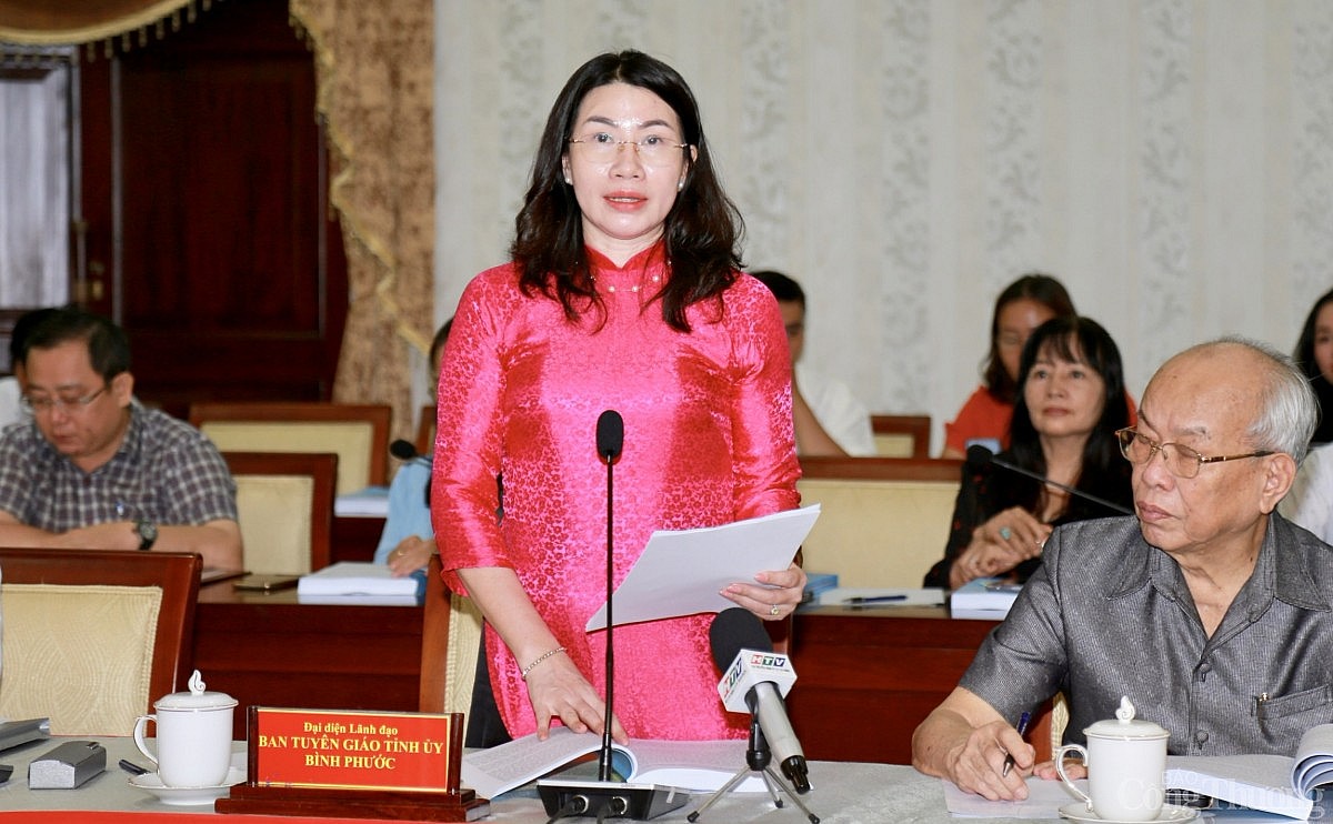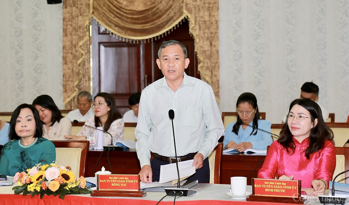 | Đại diện lãnh đạo Ban Tuyên giáo các tỉnh vùng Đông Nam Bộ đóng góp ý kiến tại hội thảo |