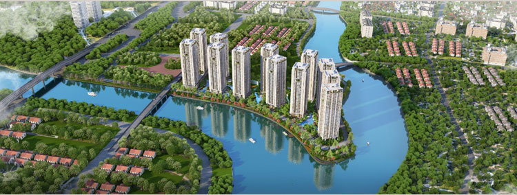 Dự án được quy hoạch khoảng cách từ mỗi khối nhà cho đến các bờ hồ chưa đến 50m, không chỉ giúp ánh sáng, gió trời tự nhiên len lỏi vào các ngôi nhà, cung đường nội bộ, mà còn tạo nên không gian sống gần nguồn nước, thuận lợi phong thủy cho gia chủ.